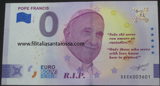 BANCONOTA 0 EURO VATICANO PAPA FRANCESCO IN MEMORIA R.I.P.