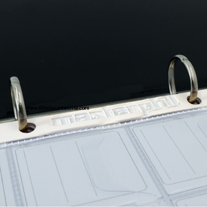 Pagina con bordo rinforzato per evitare lacerazioni in prossimità della perforazione a contatto con gli anelli.