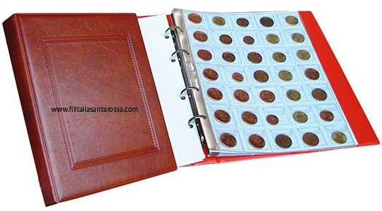 Raccoglitore per la raccolta di ogni tipo di monete, completo di cinque fogli interni per contenere monete, è possibile aggiungere ulteriori fogli.
