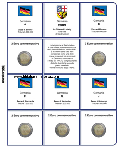 Per contenere i 2 Euro Commemorativi emessi nel 2009 dalle 5 ZECCHE della GERMANIA