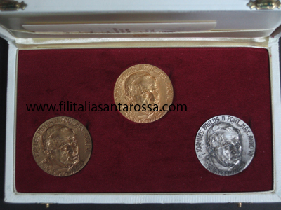 1985 - ANNO VII - PAPA GIOVANNI PAOLO II TRITTICO MEDAGLIE ORO ARGENTO BRONZO