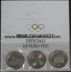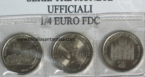 ITALIA 2025 OLIMPIADI INVERNALI 2026 TRITTICO MONETE EUROCENTS 0,25 FDC