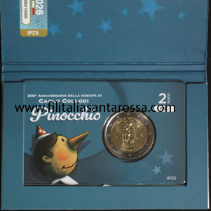 ITALIA 2026 PINOCCHIO CARLO COLLODI MONETA 2 EURO COMMEMORATIVO FDC COINCARD