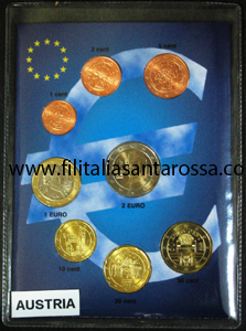 La serie completa di monete in Euro dell'Austria composta da otto monete: 2 euro, 1 euro, 50 20 10 5 2 1 centesimi