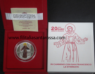 VATICANO 2024 EURO 20 ARGENTO SAN FRANCESCO LE STIMMATE PROOF PAPA FRANCESCO