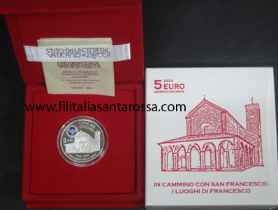 VATICANO 2024 EURO 5 ARGENTO SAN FRANCESCO SANTUARIO DELLA VERNA PROOF PAPA FRANCESCO
